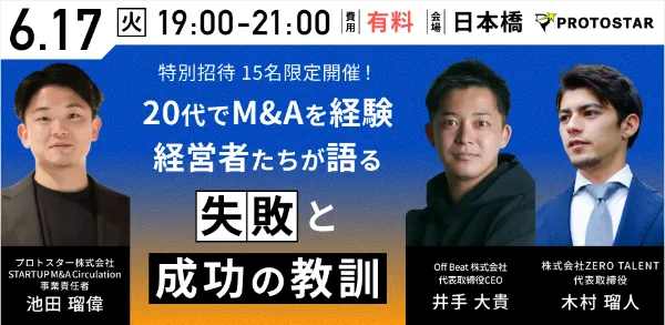 【特別招待/15名限定】20代でM&Aを経験した経営者たちが語る、失敗と成功の教訓
